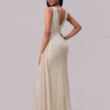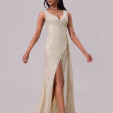 Out of State - Slit Sequin Surplice Sleeveless Maxi Dress
