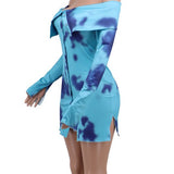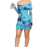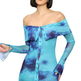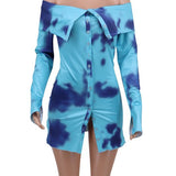 Fashion dress, long sleeves, off-shoulder front button up, body-con style
