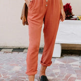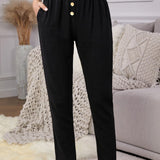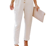 •This pair fits relaxed with an elastic waistband, side pockets and a straight leg with a cuffed hem