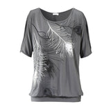Womens Cut Shoulder Casual T Shirt with Feather Print
