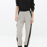 Women's casual and comfy everyday pants in mini ribbon prints.